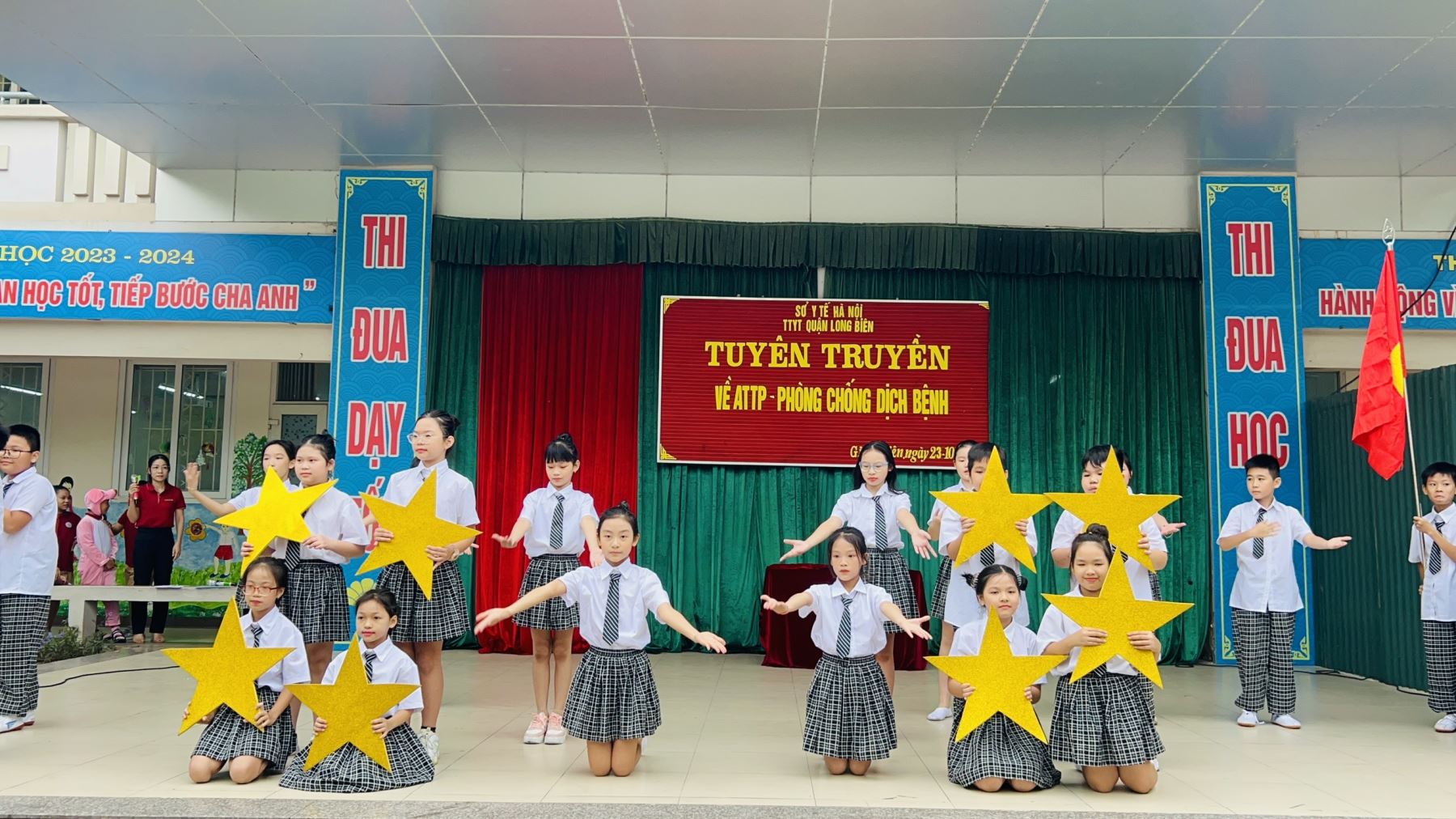 Bước sang những tuần học thứ 8 của năm học 2023 – 2024, trong giờ Hoạt động trải nghiệm đầu tuần, sau khi các em học sinh được nghe cô Tổng phụ trách Đội nhận xét thi đua trong tuần qua, các bạn học sinh lớp 3A1 vui mừng được nhận cờ thi đua lớp xuất sắc của tuần. Các em còn được thưởng thức tiết mục văn nghệ đặc sắc của các anh chị lớp 5, được cô phụ trách Y tế của trường phối hợp với trung tâm Y tế quận Long Biên tổ chức cho tham gia tìm hiểu về vệ sinh an toàn thực phẩm, phòng chống dịch bệnh, nhằm giúp cho các em học có ý thức hơn trong bảo vệ sức khỏe của mình khi đến trường.