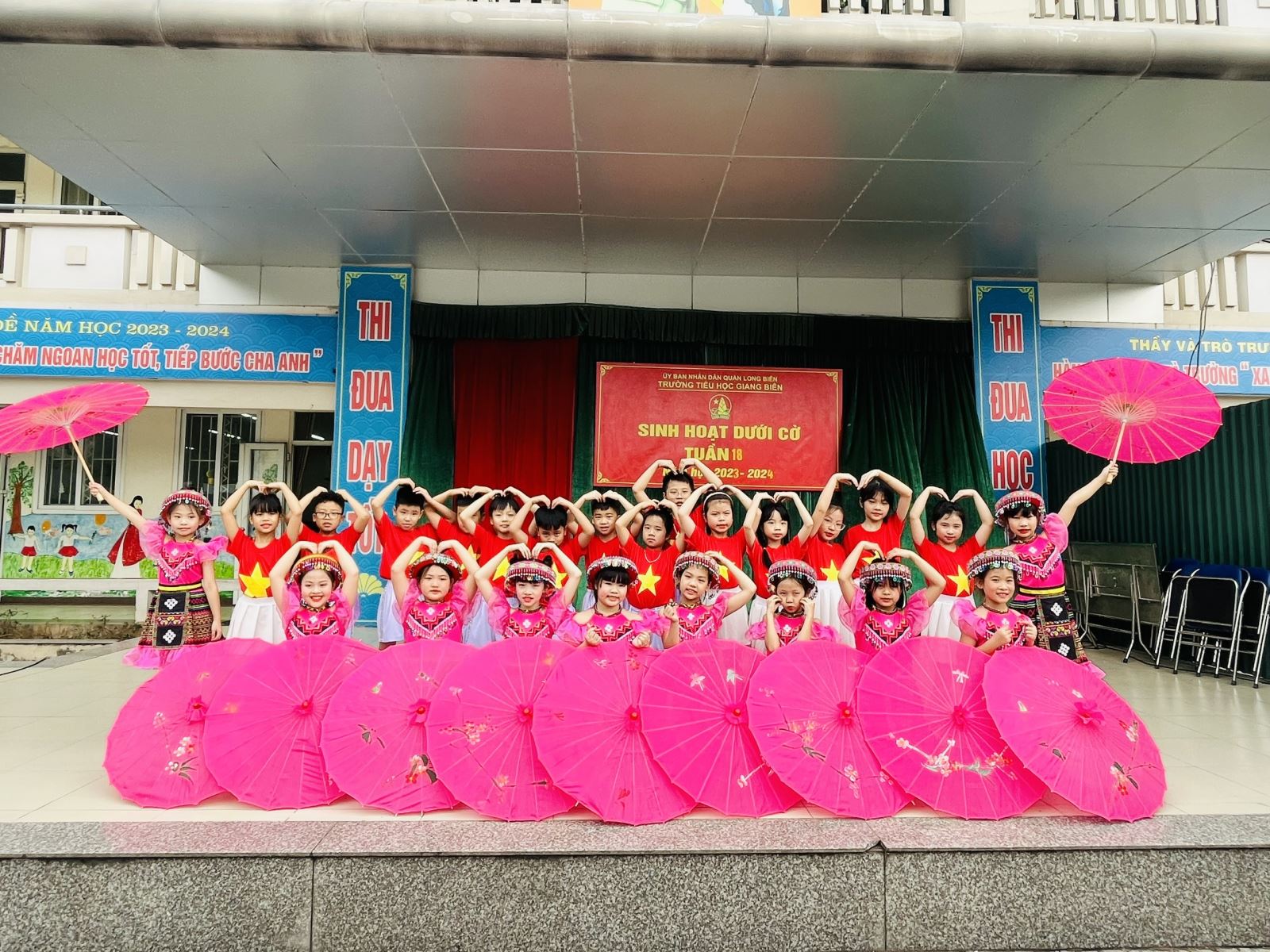 Sau bao ngày nỗ lực và hăng say luyện tập, các con học sinh thân yêu đã thể hiện 2 tiết mục văn nghệ thành công rực rỡ trong buổi lễ.
