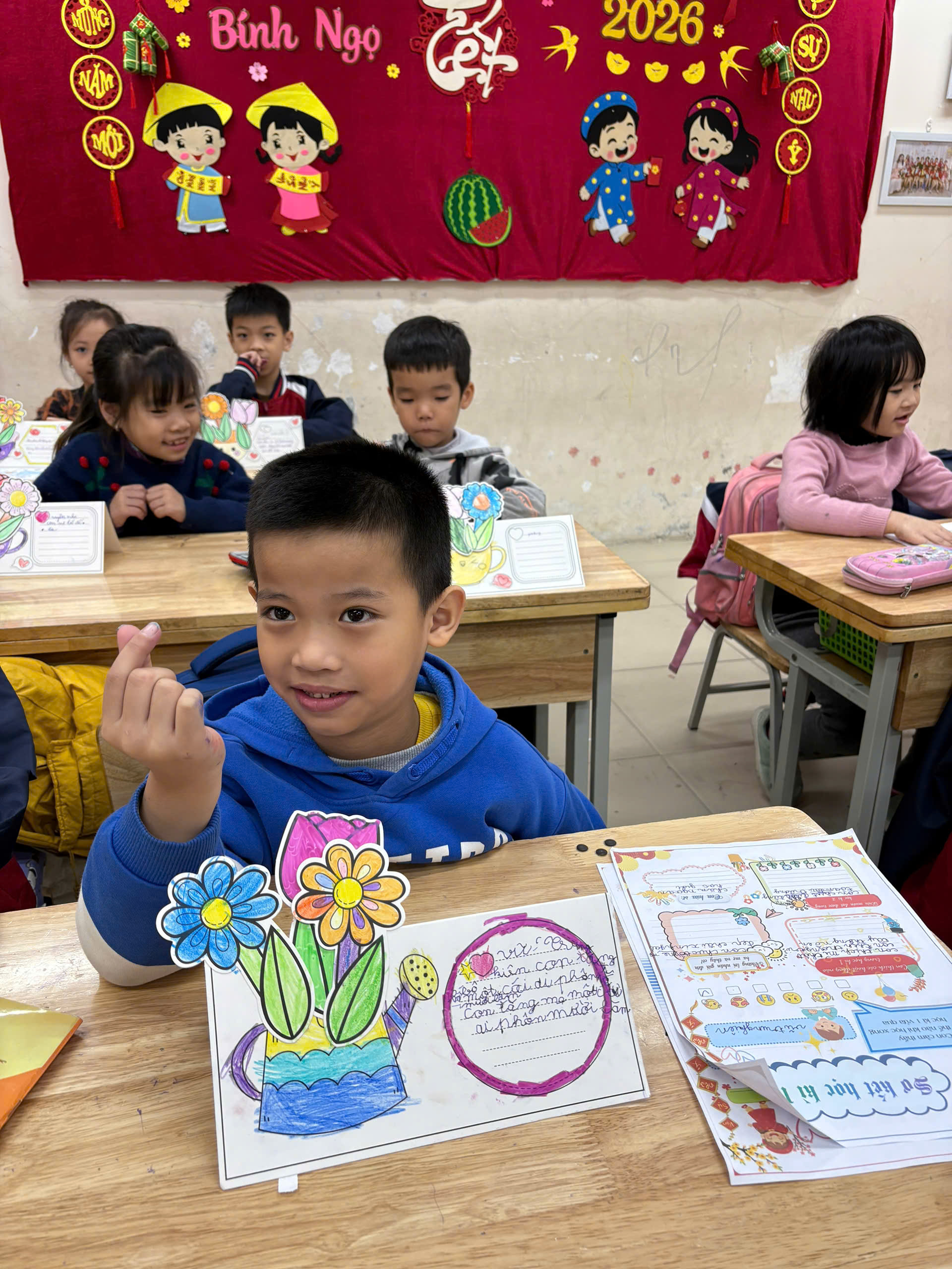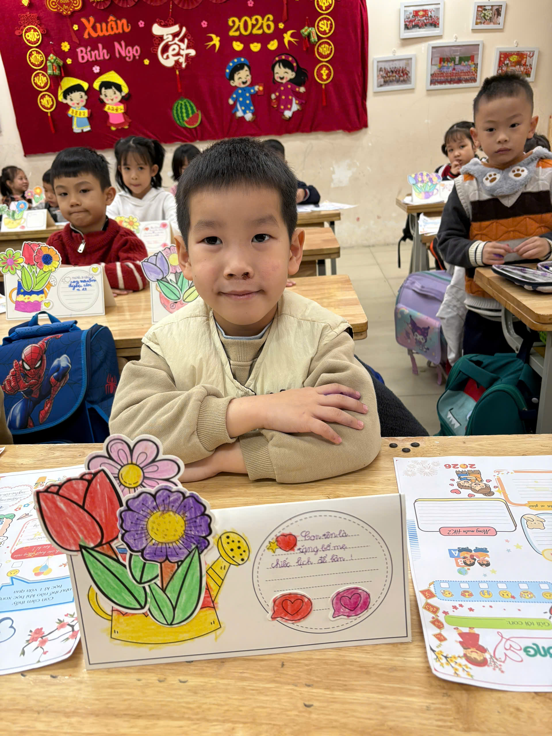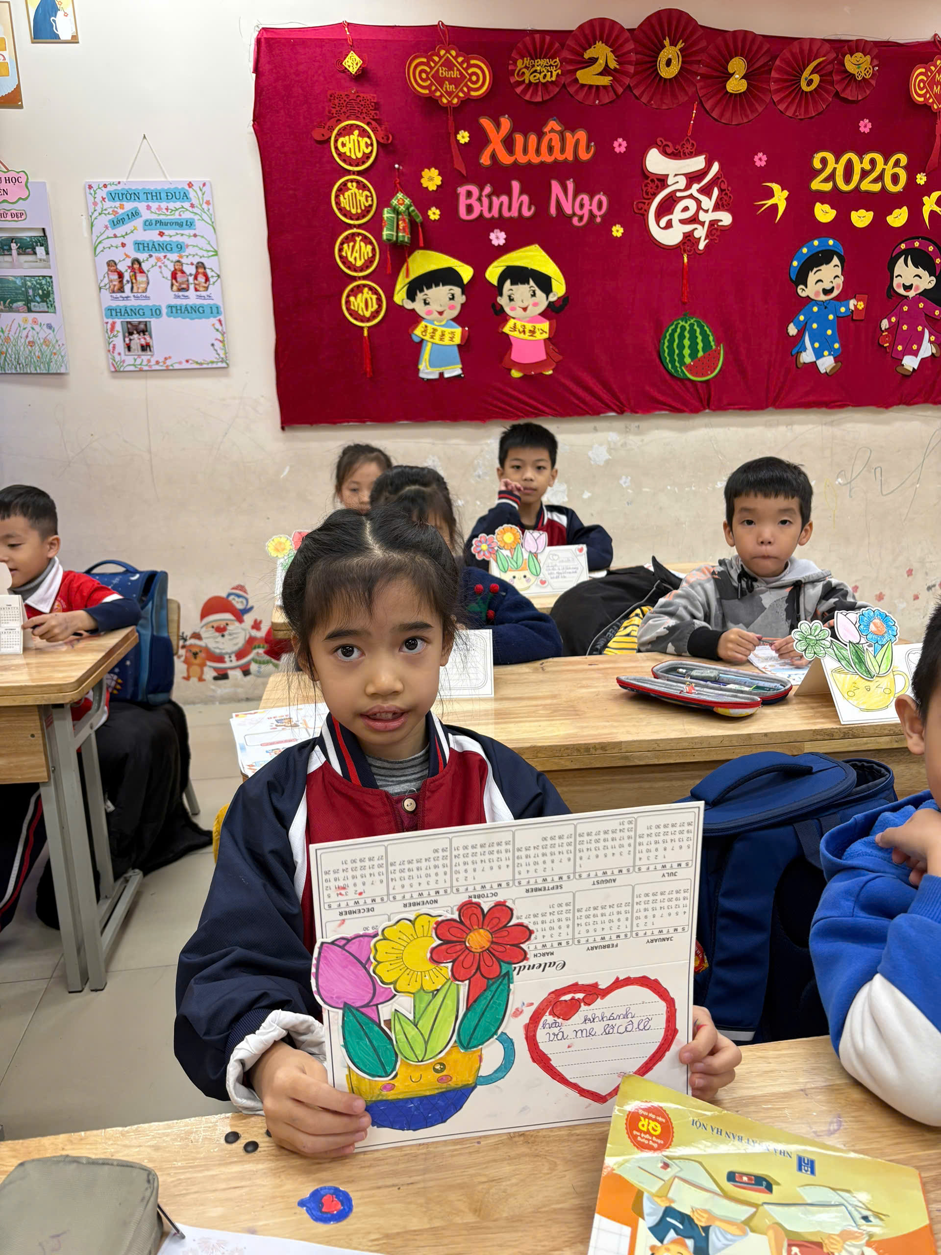 Trong buổi họp phụ huynh cuối học kì I, các con học sinh lớp 1A6 đã gửi tới bố mẹ một món quà nhỏ nhưng chứa đựng rất nhiều tình cảm: những chiếc lịch để bàn do chính tay các con trang trí và viết lời chúc 💖