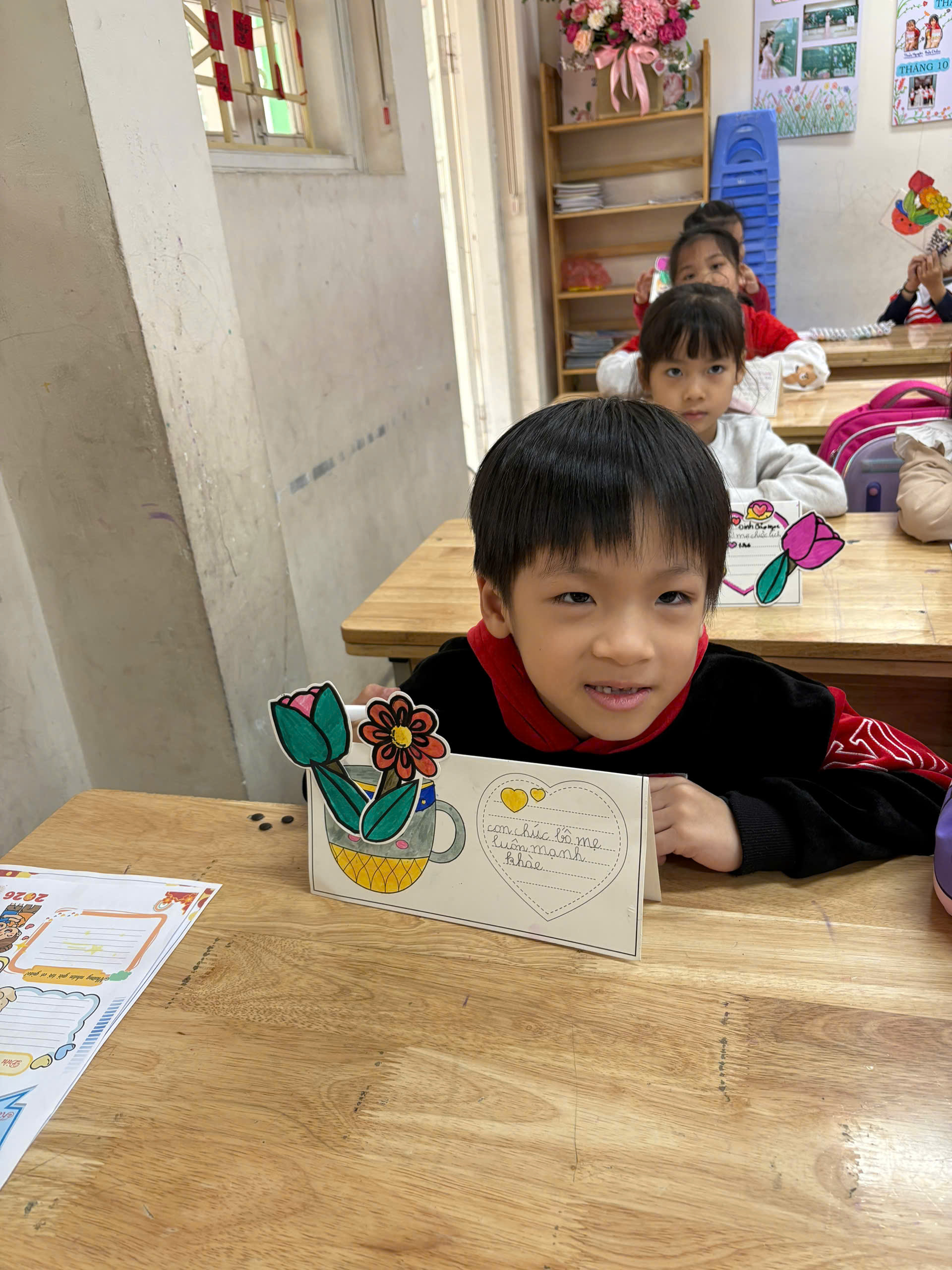 Nhà trường và cô giáo hy vọng món quà nhỏ này sẽ được bố mẹ đặt trên bàn làm việc như một kỷ niệm đáng yêu của năm học đầu đời của con 📖✨