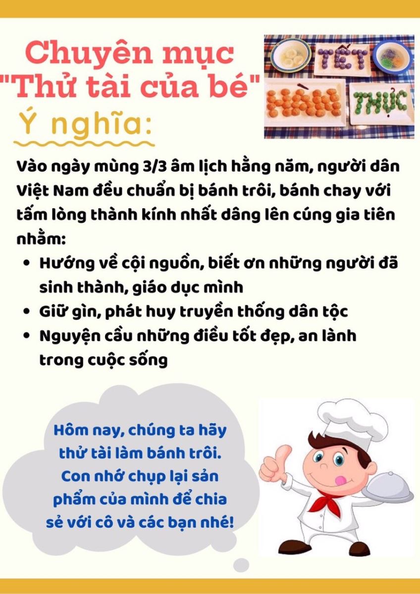 Ngày 1/4/2023 Lớp 3A1 các bạn học sinh tìm hiểu ý nghĩa về Tết Hàn Thực. Các bạn nhỏ đã tham gia vào thử thách "Thử tài của bé".
