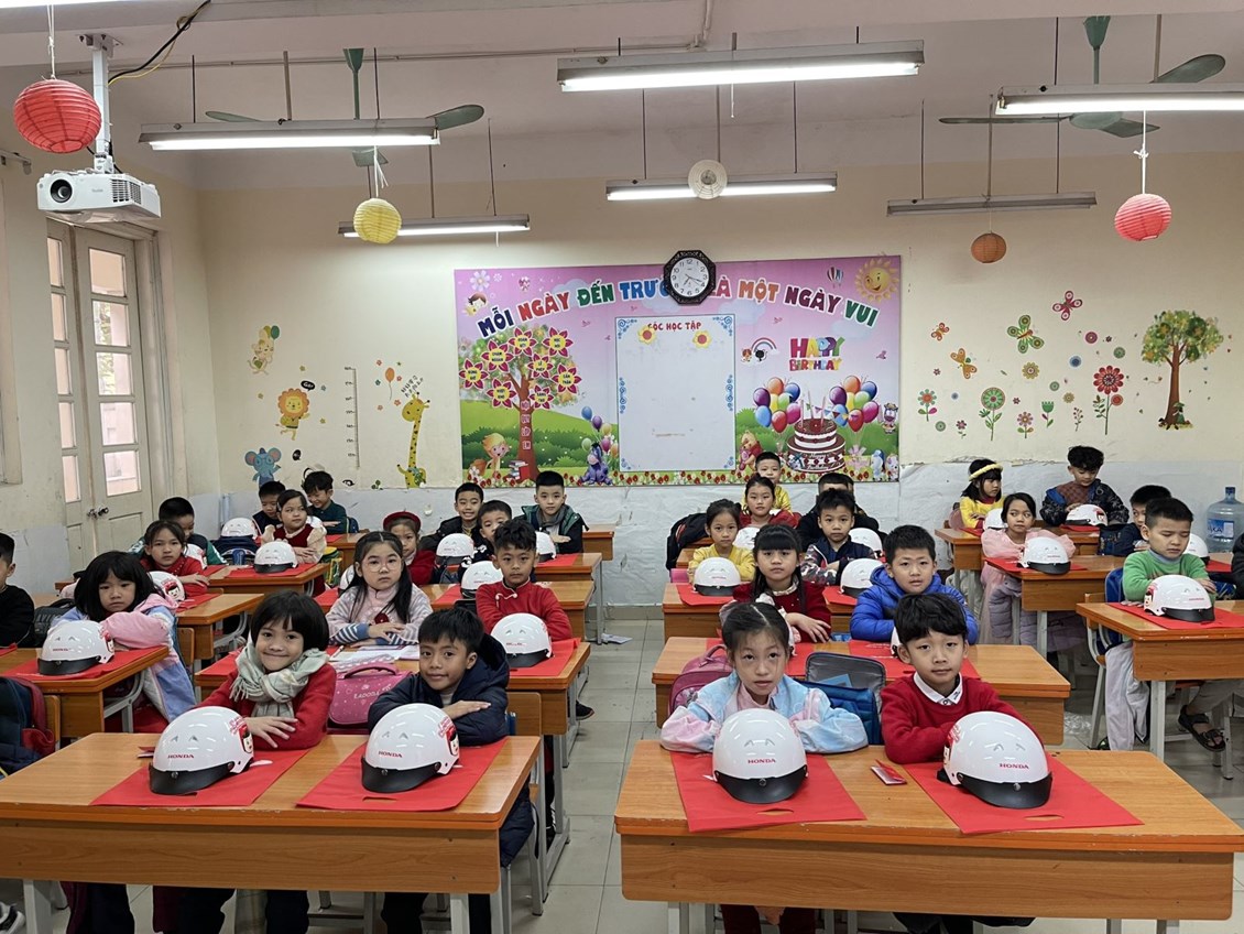 Thực hiện Kế hoạch trao tặng mũ bảo hiểm cho học sinh lớp 1, lớp 2 năm học 2022-2023, Ban điều phối Công ty Honda Việt Nam và ủy ban ATGT Quốc gia đã tặng cho Trường tiểu học Giang Biên 334 chiếc mũ bảo hiểm trị giá hơn 26 triệu đồng. HS lớp 1, 2 háo hức được nhận mũ bảo hiểm của công ty Honda Việt Nam