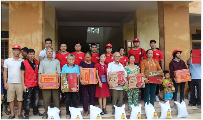 xuất quà được trao đến tận tay đồng bào bị thiệt hại do lũ lụt đã góp phần chia